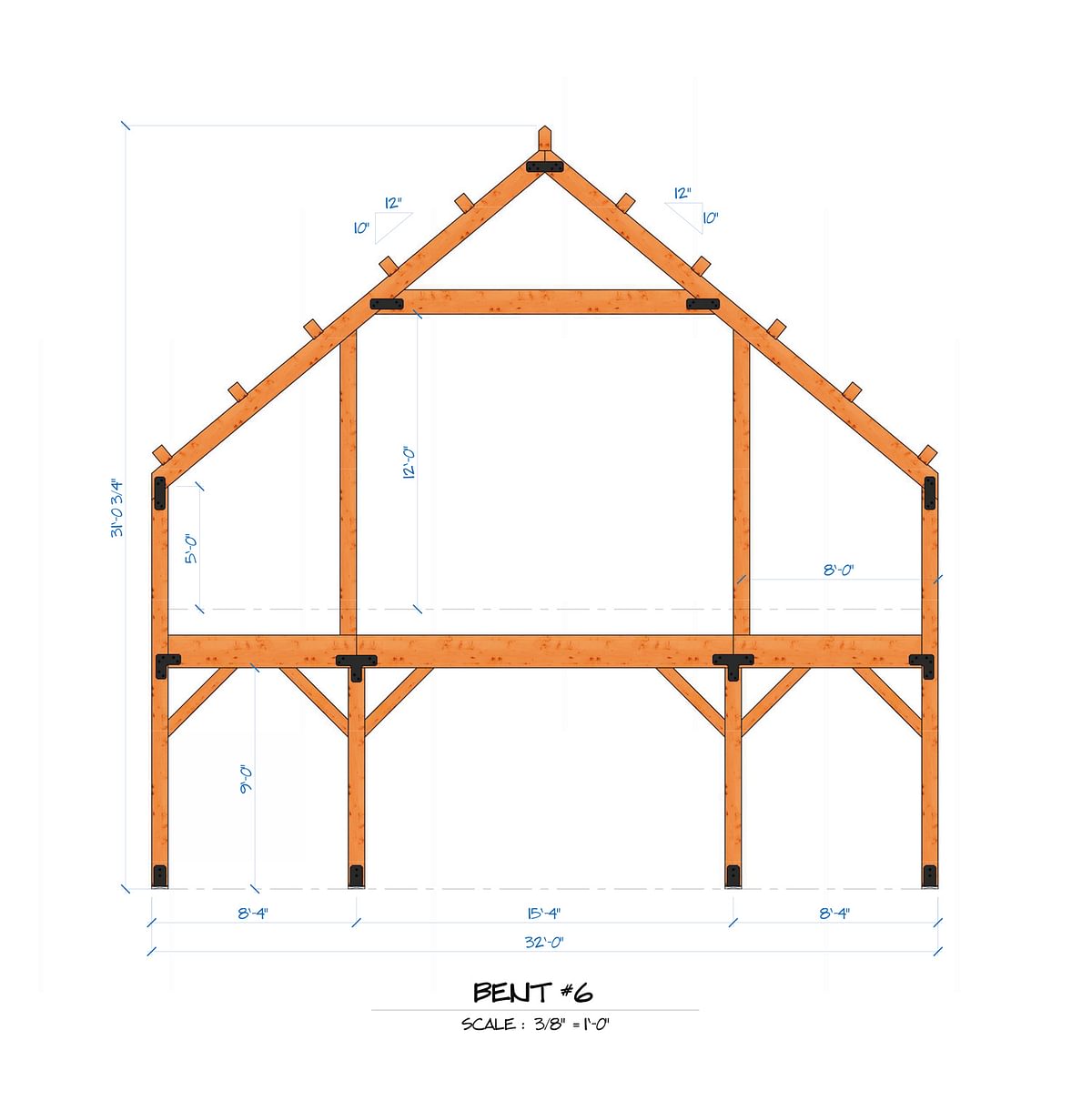 - 8x8 (and larger) post and beam frame with steel plate joinery